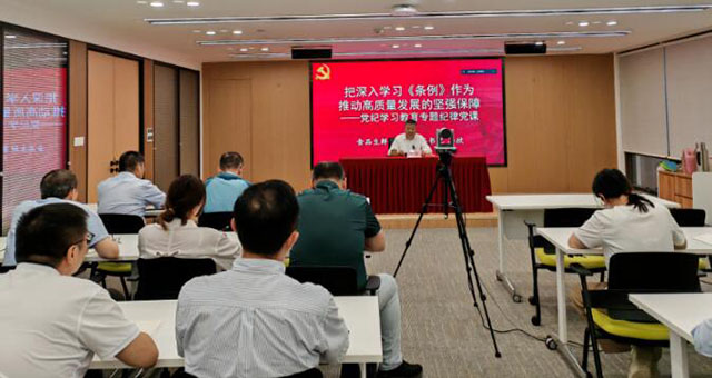 黨課開始前,黨委安排全體黨員首先集中觀看了《嚴于律己的杰出楷模--周恩來》,深入學習周恩來總理嚴于律己、清正廉潔的光輝事跡。隨后,季欣從“來源、意義、實踐”三個層面,分別講述了我黨紀律建設(shè)走過的路程、開展紀律建設(shè)的重要性、如何把深入學習《條例》作為推動高質(zhì)量發(fā)展的堅強保障三個方面內(nèi)容,給全體黨員上了一堂生動的紀律黨課。