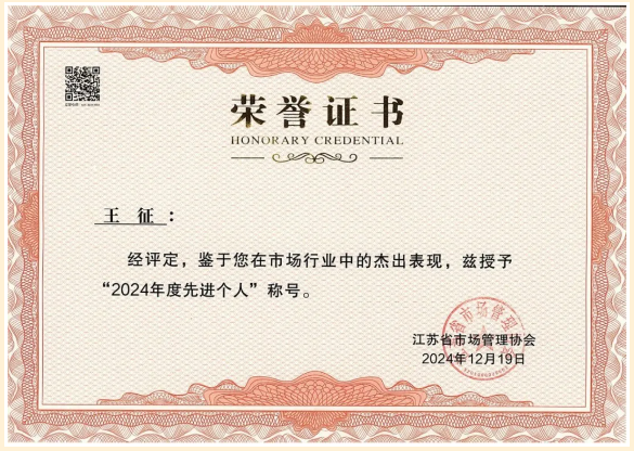 無錫中萃食品有限公司執(zhí)行董事王征,榮獲“2024年度先進(jìn)個人”。