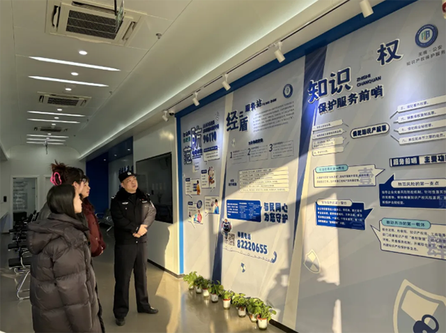 創(chuàng)新是引領發(fā)展的第一動力,保護知識產權就是保護創(chuàng)新。為全方位加強知識產權保護,切實維護企業(yè)合法權益,助力營造最優(yōu)法治營商環(huán)境,2025年1月8日上午8:30,無錫市公安局食藥環(huán)偵支隊組織號召無錫盛陽食品城有限公司辦公室主任侯丹花等一行4人來到了市公安梁溪分局知識產權保護服務前哨進行參觀。公安梁溪分局食藥環(huán)偵大隊孫磊、周莎負責接待、參觀引導和解說。