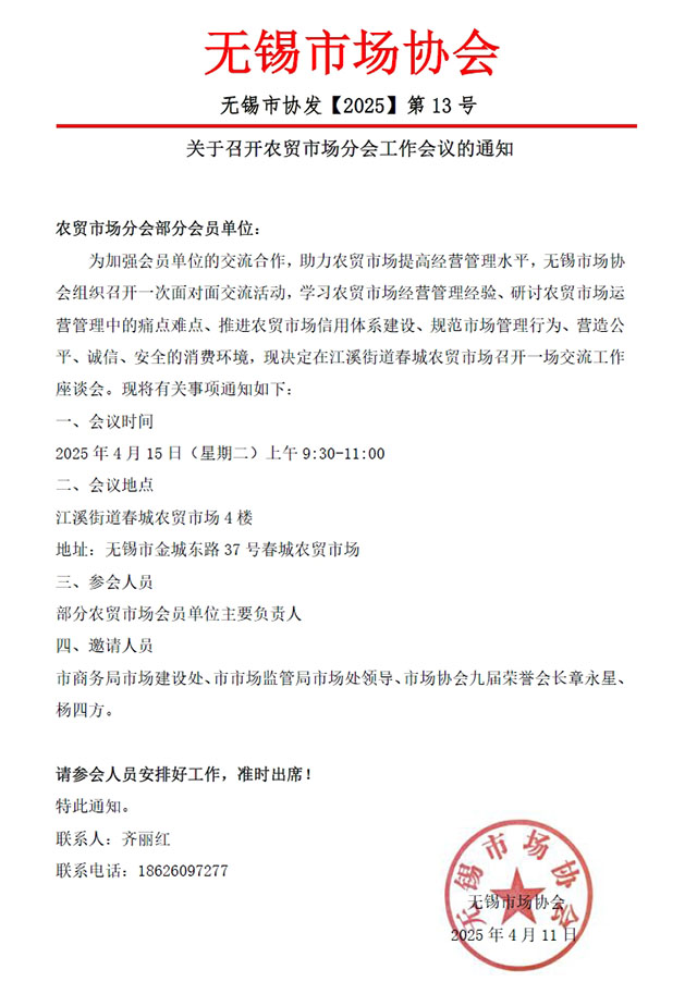 市協(xié)發(fā)【2025】第13號(hào)農(nóng)貿(mào)市場(chǎng)會(huì)議通知(春城)