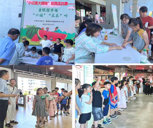 2025 年8 月15 日上午,蠡湖集貿(mào)市場內(nèi)童聲笑語與瓜果清香交織成趣。由無錫市場協(xié)會與蠡湖集貿(mào)市場聯(lián)合主辦的“童眼探市場‘口?!瞎稀小∮浾呤袌龃蠼颐亍背晕鞴媳荣惢馃嵘涎荩?8 名5-12 歲的小記者化身市場探索家,開啟了一場別開生面的消費體驗之旅。