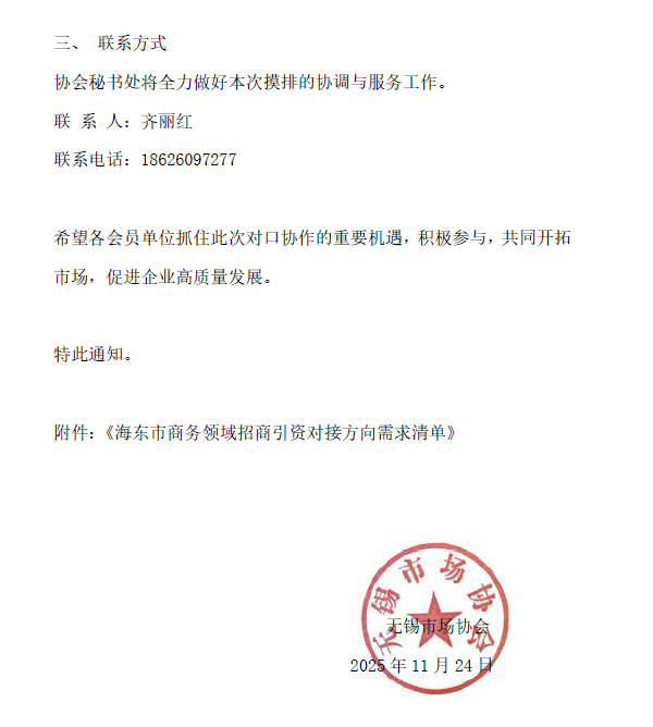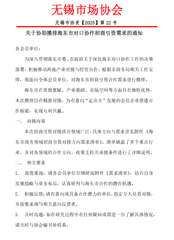 無錫市協(xié)發(fā)【2025】第 22 號關(guān)于協(xié)助摸排海東市對口協(xié)作招商引資需求的通知