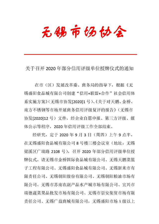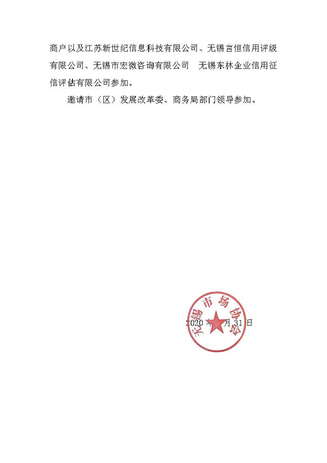 關(guān)于對(duì)2020年部分信用評(píng)級(jí)單位授牌儀式的通知書