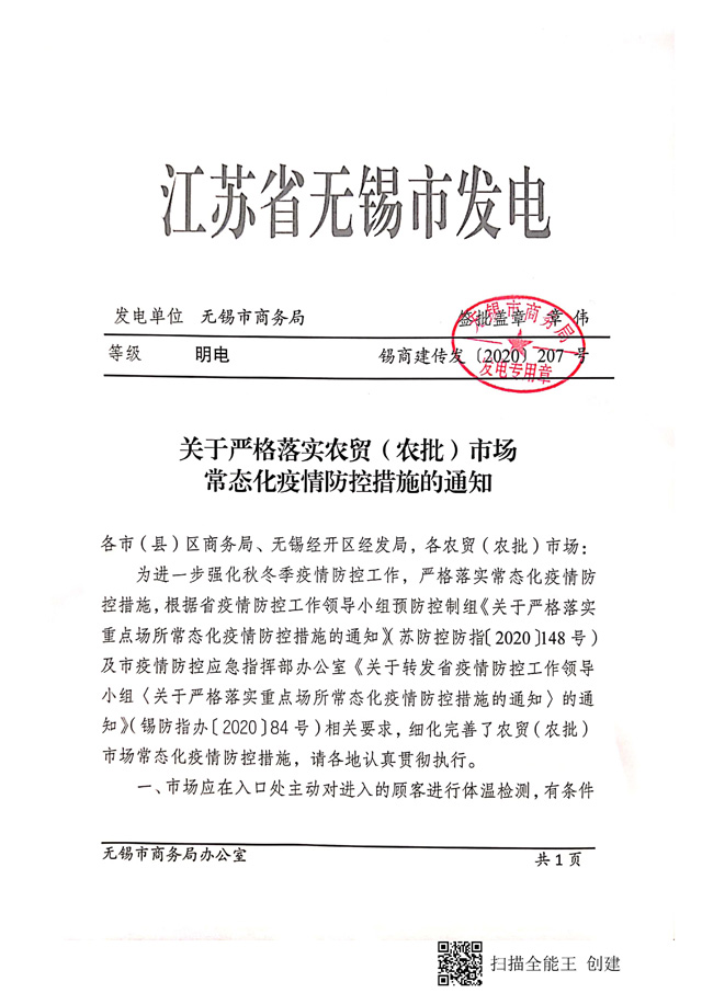 關(guān)于嚴(yán)格落實(shí)農(nóng)貿(mào)(農(nóng)批)市場(chǎng)常態(tài)化疫情防控措施的通知