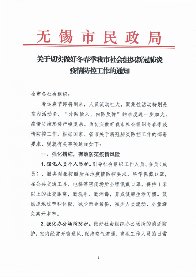 關(guān)于切實做好冬春季我市社會組織新冠肺炎疫情防控的通知