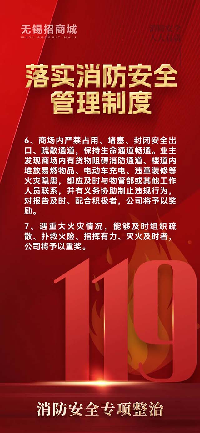 消防安全工作任重而道遠(yuǎn),招商城作為消防安全主體責(zé)任單位,將繼續(xù)加大人力物力投入,從嚴(yán)從緊抓好消防安全工作,加快整改步伐。