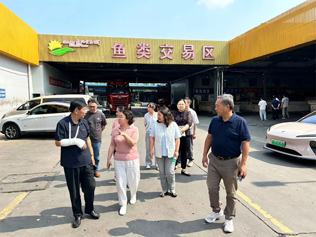 馮敏首先向客人介紹了近期政府、百姓特別關(guān)注的“兩魚”食安問題處置方式及過程,并陪同參觀了市場六大經(jīng)營區(qū)域及水產(chǎn)品快速檢測室。在檢測室,錢夏與天鵬檢測技術(shù)人員進(jìn)行了深入交流:同時,向眾人講解了市場電子結(jié)算溯源系統(tǒng)相關(guān)工作開展流程,介紹了由于市場食安管理工作開展比較扎實(shí),受到了“5月27日江蘇省農(nóng)業(yè)農(nóng)村廳食安調(diào)研組”的高度認(rèn)可,不久前公司也收獲了由中國食品安全報社授予的“行業(yè)貢獻(xiàn)單位”榮譽(yù)。