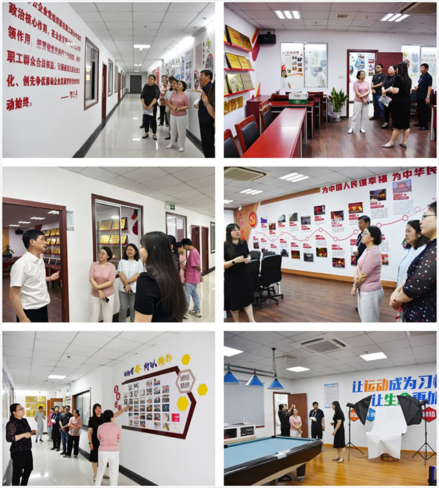 隨后,在華曙東的陪同下,大家來到盛陽食品城8號樓三樓,由侯丹花引領(lǐng)眾人參觀并介紹了盛陽產(chǎn)改指導(dǎo)站、公司文化宣傳墻、工會職工書屋、心理疏導(dǎo)室、電子閱覽室等陣地建設(shè)情況。