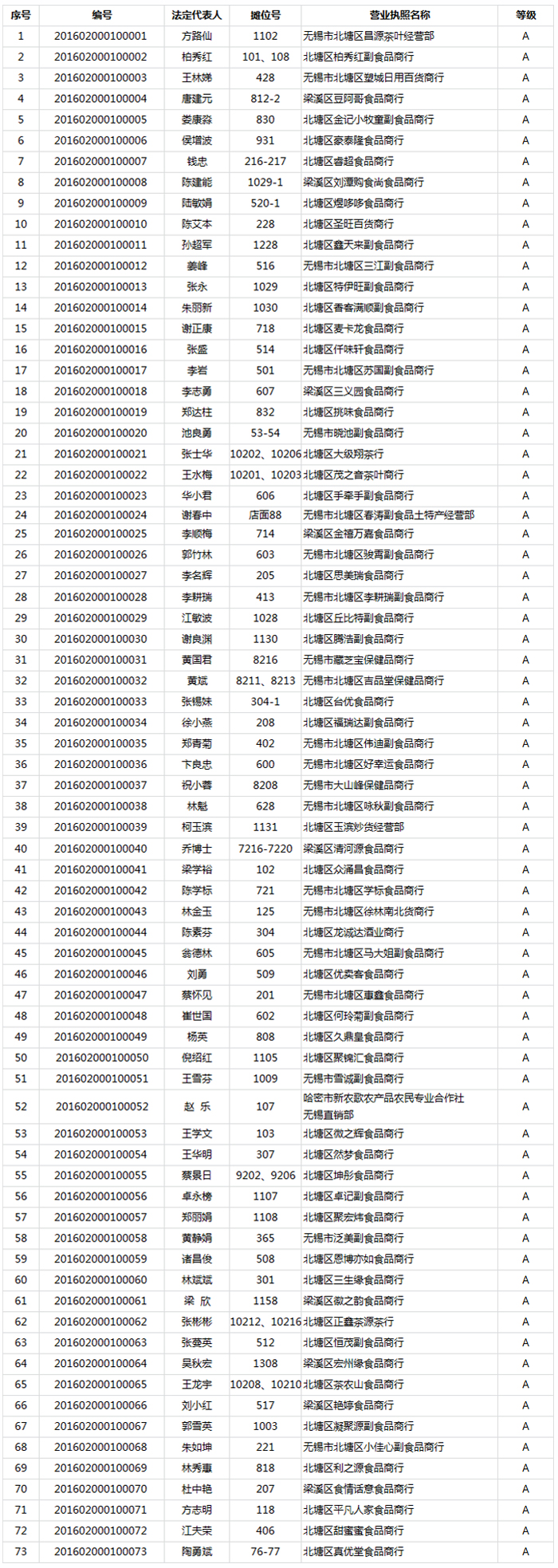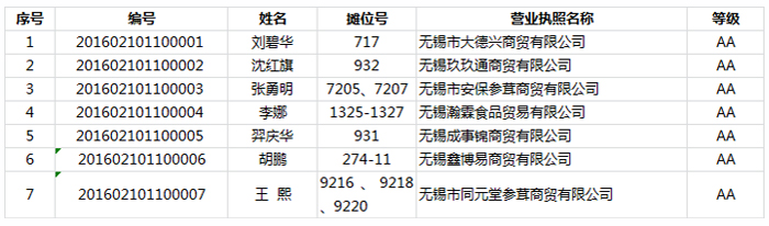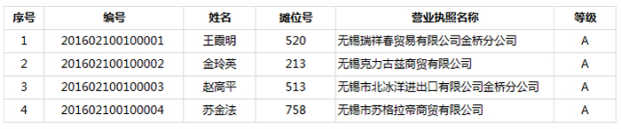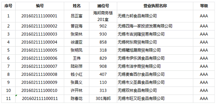 2016年金橋副食品市場(chǎng)商務(wù)誠信評(píng)級(jí)企業(yè)名單匯總表