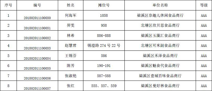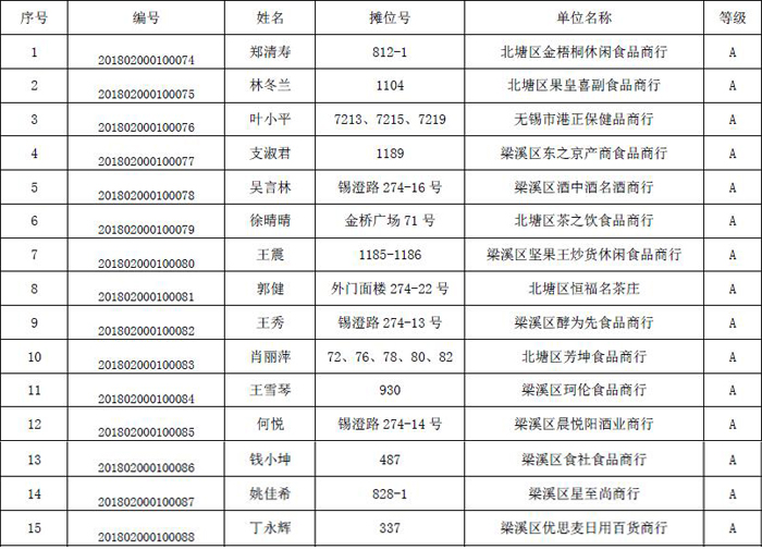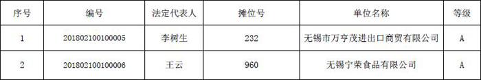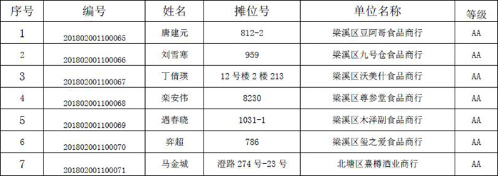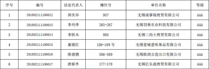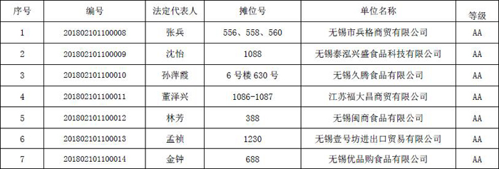 2018年金橋進口食品商務誠信評級名單