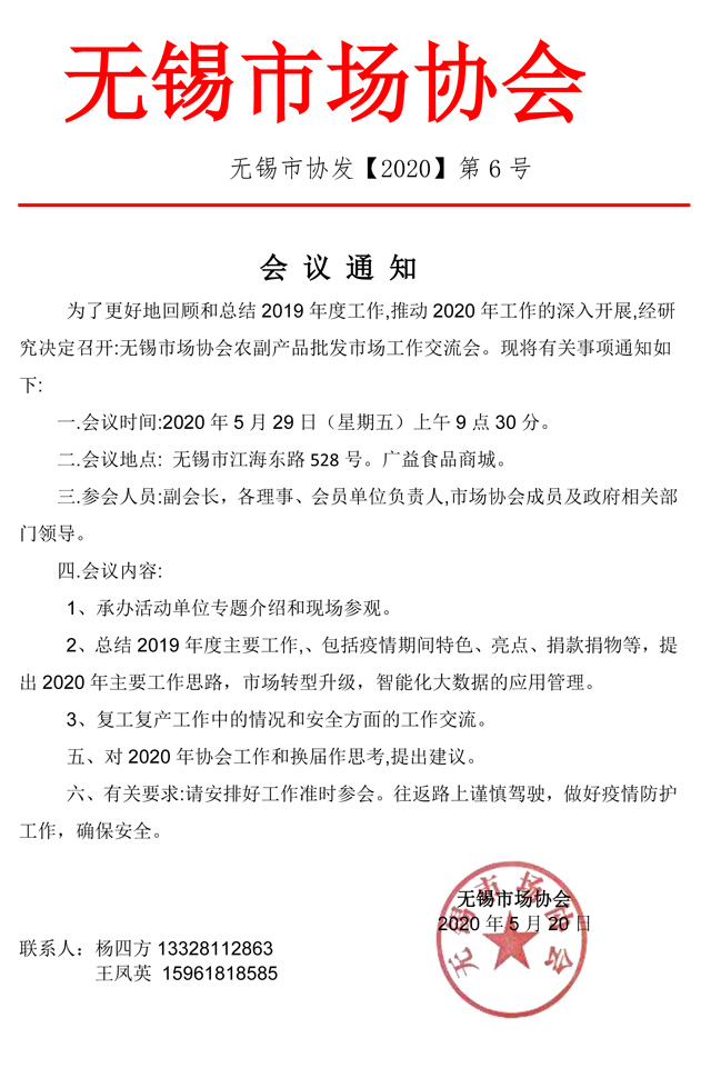 農(nóng)副產(chǎn)品批發(fā)市場工作交流會議通知