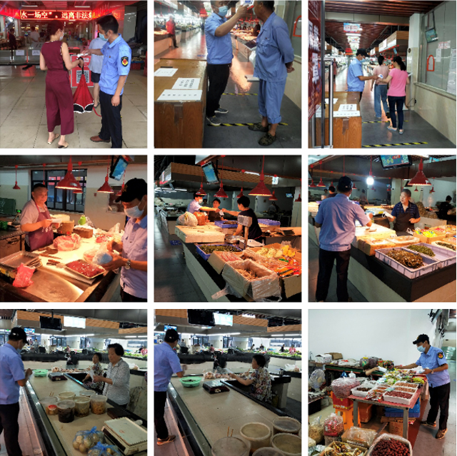 防控政策及要求,宣傳欄即時更新上級防控動態(tài)信息及工作要求。積極落實政府基層網(wǎng)格化管理嚴(yán)防嚴(yán)控,對所在市場的市場人員進(jìn)行防控信息動態(tài)全程掌握。各市場配備和啟動大音響滾動播報來防疫管控告知引導(dǎo)廣大群眾配合做好防疫工作。同時在硬件和軟件上加大投入,健全索證索票追源臺賬,加強(qiáng)信息的對外公開即時和批次量,擴(kuò)大了蔬菜的農(nóng)殘檢測面和批次,對熟食的進(jìn)貨環(huán)節(jié)強(qiáng)化食品小作坊證的檢查備案制,加強(qiáng)了進(jìn)口冷凍肉的票證索源和增加了水產(chǎn)的票證索源登記制,在國家疫情告急反應(yīng)為進(jìn)口冷鏈發(fā)現(xiàn)問題后馬上停售進(jìn)口冷凍肉,下架和停售三文魚等海鮮經(jīng)營,所有經(jīng)營戶和市場工作人員立即進(jìn)行核酸檢測全覆蓋為合格,無條件接受食安抽檢和采樣國檢,堅決貫徹長江魚禁售和野生動物禁售法規(guī)全覆蓋,接受市文民辦和紀(jì)委等條線的明察暗訪,市場方自覺配合公安、醫(yī)療、街道、社區(qū)等相關(guān)部門,精準(zhǔn)排查和動態(tài)掌握經(jīng)營戶和家屬中的發(fā)熱病人、密切接觸者,確保無遺漏、無死角;配合搞好經(jīng)營公場所衛(wèi)生整治,做好清潔、消毒和通風(fēng),確保各項防控措施不折不扣落實到位,各項臺賬全面到位,較好的完成各項工作。在防疫工作不放松的同時我司還在全部市場堅決落實穩(wěn)物價、保供應(yīng)、打哄抬、定民心的市場保供應(yīng)工作 。1,要求市場管理工作人員和全體經(jīng)營戶須加強(qiáng)自律行為,不信謠、不傳謠、不發(fā)布不實信息和虛假信息,一切與政府公告和官網(wǎng)信息為準(zhǔn)。2,對政府保供應(yīng)穩(wěn)物價投放的放心豬肉等商品開放綠色通道,及時向消費者公布價格信息及商品信息。3.對消費者必須不可缺的商品物資做好及時信息統(tǒng)計,做好協(xié)調(diào)補(bǔ)倉上貨工作。4.對惡意囤積、搶購、哄抬物價等不法行為依法行為給予打擊。做到各項工作穩(wěn)、準(zhǔn)、嚴(yán)精準(zhǔn)到位,經(jīng)的起人民的檢查和上級各部門及紀(jì)委的督查,同時也得到了江陰市委、市府等領(lǐng)導(dǎo)的肯定。
