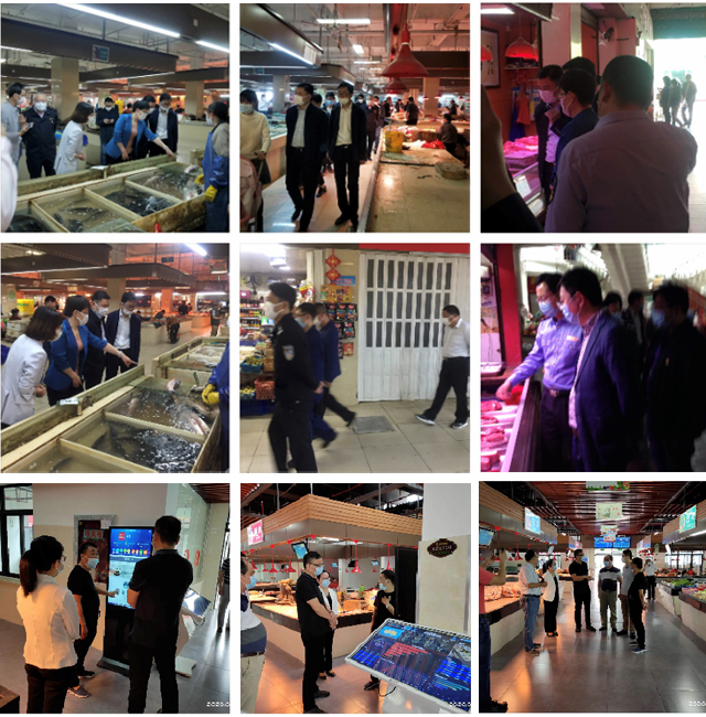 (展示部分圖片為各級領(lǐng)導(dǎo)視察各市場防疫防控工作)