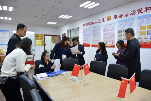 根據(jù)中共無錫市委組織部3月12日所發(fā)的《關(guān)于開展黨支部標(biāo)準(zhǔn)化規(guī)范化建設(shè)驗收互學(xué)互查工作的通知》的文件要求,2021年3月29日上午10點,在盛陽食品城三樓召開了黨支部標(biāo)準(zhǔn)化、規(guī)范化驗收交流會,經(jīng)開區(qū)太湖街道基層黨建工作指導(dǎo)站站長周燕燕同志、經(jīng)開區(qū)太湖街道基層黨建工作指導(dǎo)站指導(dǎo)員浦旖驪同志、梁溪區(qū)委組織部陸開越同志、廣益街道組織委員曹新愷同志、毛岸新苑社區(qū)黨總支副書記黃香麗同志以及社區(qū)工作人員、盛陽食品城黨支部書記華曙東同志以及盛陽黨支部宣傳委員于潔菁同志、黨員朱月娥同志、侯丹花同志參加了本次的驗收交流會。