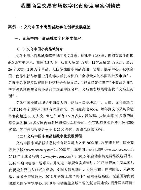 義烏中國(guó)小商品城數(shù)字化創(chuàng)新發(fā)展經(jīng)驗(yàn)