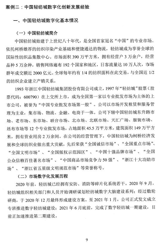 中國輕紡城數(shù)字化創(chuàng)新發(fā)展經(jīng)驗(yàn)