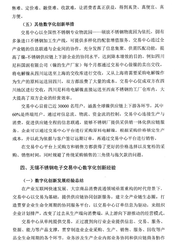 無錫市不銹鋼電子交易中心創(chuàng)新發(fā)展經(jīng)驗