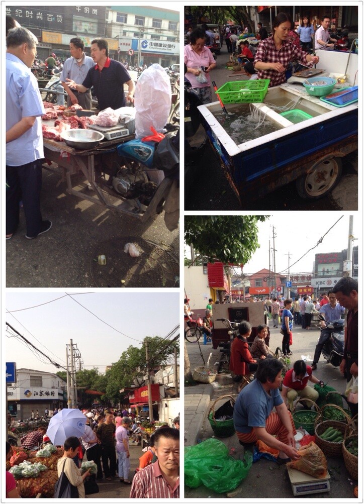 5月28日清晨,分會工作人員走訪了劉譚農(nóng)貿(mào)市場。 早上7點,從錫澄路向任錢路向西方向,進入市場的道路就顯得十分擁堵了。馬路兩邊有做生意的三輪車、隨意停放的電動車、加上從反方向開出來的車子和買完菜走出來的市民。想要進入市場,也只能錯綜著借道,根本就沒馬路可言。正對著劉譚農(nóng)貿(mào)市場的一條道路兩側更是一望無底的“買菜步行街”。不光有賣蔬菜的,水果、肉類、水產(chǎn)、農(nóng)貿(mào)市場里面有的,“馬路市場”上一樣也不少。而且在這邊買菜的居民也非常多,一片繁忙的交易現(xiàn)象。 圖為清晨劉譚農(nóng)貿(mào)市場外的馬路市場