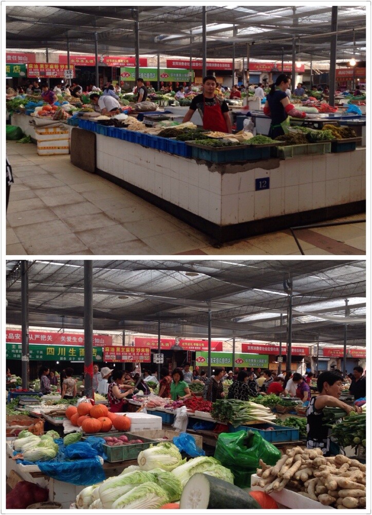 走進劉譚農(nóng)貿(mào)市場,市場明亮整潔,不少經(jīng)營戶守著碩大的攤位,顯得比較悠閑。到了早上7點半,城管上班了。在短短幾分鐘之內(nèi),熱鬧的馬路市場逐漸安靜了,留下了一整條“五顏六色”的垃圾道路。沒過多久,從市場辦公室的監(jiān)控中可以看到,農(nóng)貿(mào)市場也逐漸有了人流量,交易慢慢多了起來。 圖為馬路市場前后農(nóng)貿(mào)市場的交易現(xiàn)象