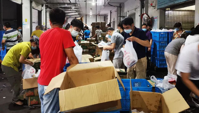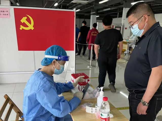 公司重啟每日全員核酸檢測(日均3000人次),并于7月4日起啟動了包含員工、經(jīng)營戶和消費者在內(nèi)的一天兩輪次的全員抗原檢測(約8000人次)。各黨組織充分發(fā)揮黨的政治優(yōu)勢、組織優(yōu)勢和密切聯(lián)系群眾優(yōu)勢,黨員、團員志愿者紛紛再次請纓,助力全員核酸和抗原檢測志愿服務(wù),市場內(nèi)不少經(jīng)營戶和沿街商鋪經(jīng)營管理人員也主動加入,以實際行動支持天鵬食品城的防控工作。