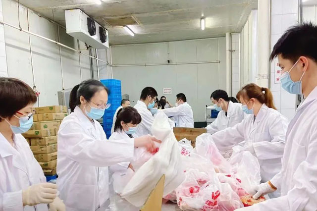 疫情期間,真正老陸稿薦公司門店業(yè)務(wù)不降反升,臨時添貨、臨時保供訂單次數(shù)增多,陸稿薦支部第一時間發(fā)動黨員干部支援車間,確保公司熟食加工生產(chǎn)正常進行。當(dāng)部分門店因配送車輛不足、人手緊缺時,有的黨員還主動當(dāng)起了駕駛員和送貨員,以實際行動真正踐行黨員先行、黨員帶頭的精神風(fēng)貌。
