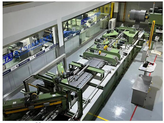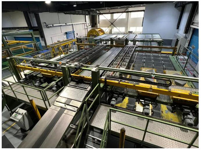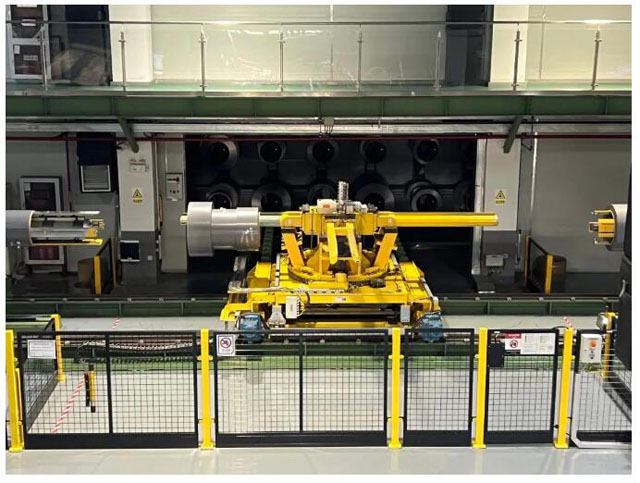 在2018年布局新建的普天鐵心二期工廠,來(lái)自瑞士的縱剪機(jī)組、德國(guó)的傳輸軌道、芬蘭的自動(dòng)包裝機(jī)組,組合為同一個(gè)車間的伙伴,當(dāng)系統(tǒng)接到訂單后瞬間生成生產(chǎn)指令,只見(jiàn)機(jī)械臂從一面重達(dá)5000噸的智能立庫(kù)墻上“抄”起一個(gè)23噸重的硅鋼卷,在縱剪機(jī)上完成大卷開(kāi)小卷,接著按照薄度、規(guī)格要求將硅鋼放到作業(yè)區(qū)自主行進(jìn),然后進(jìn)行剪切、套疊,實(shí)現(xiàn)所有生產(chǎn)工藝流程的最優(yōu)化。整個(gè)車間內(nèi)恒溫恒濕,人與人、人與設(shè)備、設(shè)備與系統(tǒng)之間形成一個(gè)精密的集成互聯(lián)系統(tǒng),使復(fù)雜工藝在不同工序間能夠無(wú)縫銜接。