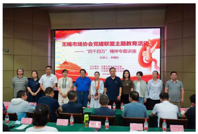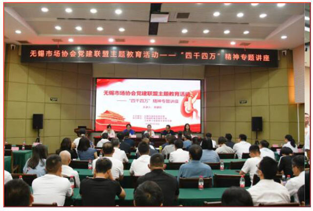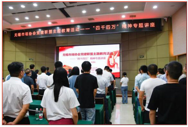 為全面貫徹黨的二十大精神,以保持黨員先進(jìn)性為基本要求,充分發(fā)揮基層黨組織戰(zhàn)斗堡壘和共產(chǎn)黨員先鋒模范作用,繼續(xù)弘揚(yáng)“四千四萬(wàn)”精神,為企業(yè)高質(zhì)量發(fā)展夯實(shí)基礎(chǔ)。2023年5月30日上午,由無(wú)錫市場(chǎng)協(xié)會(huì)黨支部主辦,無(wú)錫盛陽(yáng)食品黨支部和江蘇港下雙面呢市場(chǎng)黨支部協(xié)辦的“四千四萬(wàn)”精神黨課教育活動(dòng)在中國(guó)企業(yè)無(wú)錫培訓(xùn)中心9號(hào)樓一樓綜合報(bào)告廳召開。無(wú)錫工商聯(lián)行業(yè)處副處長(zhǎng)毛一嵐同志、無(wú)錫市場(chǎng)協(xié)會(huì)執(zhí)行會(huì)長(zhǎng)章永星同志、無(wú)錫市場(chǎng)協(xié)會(huì)黨建聯(lián)盟原十個(gè)黨支部黨員以及新加盟的八個(gè)黨支部相關(guān)黨員參加。盛陽(yáng)黨支部副書記侯丹花同志帶領(lǐng)支部13名黨員參加了此次培訓(xùn)活動(dòng)?;顒?dòng)由無(wú)錫市場(chǎng)協(xié)會(huì)秘書長(zhǎng)楊四方同志主持。