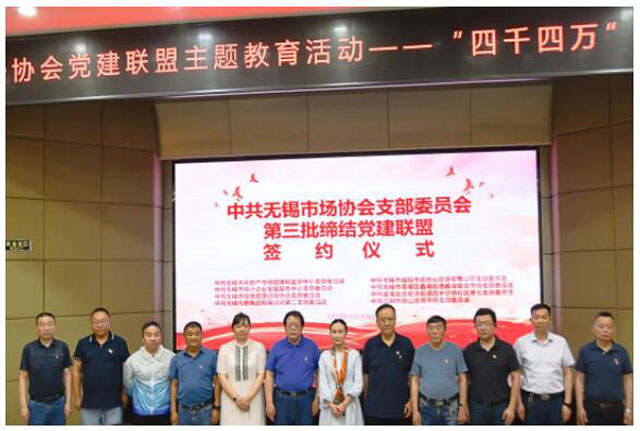活動(dòng)中,第三批加入無(wú)錫市場(chǎng)協(xié)會(huì)黨建聯(lián)盟的8個(gè)黨支部現(xiàn)場(chǎng)進(jìn)行了簽約并合影留念。章會(huì)長(zhǎng)對(duì)新加入的8個(gè)黨支部表示了衷心的祝賀,并言簡(jiǎn)意賅地精準(zhǔn)概括了黨建聯(lián)盟的原則:黨建引領(lǐng)、抱團(tuán)服務(wù)、共建共享。通過(guò)黨建聯(lián)盟的組織,讓各個(gè)聯(lián)盟單位進(jìn)行區(qū)域性的共建、行業(yè)性的共建、兩新組織的共建,實(shí)現(xiàn)優(yōu)勢(shì)資源的共享,充分發(fā)揮各個(gè)黨支部黨員的引領(lǐng)作用,尋求最優(yōu)路徑助力企業(yè)的發(fā)展。