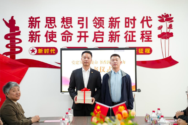 此外,春雷社區(qū)黨委書記王浩代表黨委向中恒集團尤芳專贈送了黨建相關書籍,旨在助力黨支部加強理論學習,提升黨員的政治素養(yǎng)和思想覺悟,為黨支部后續(xù)開展黨建工作提供有力的知識支持。