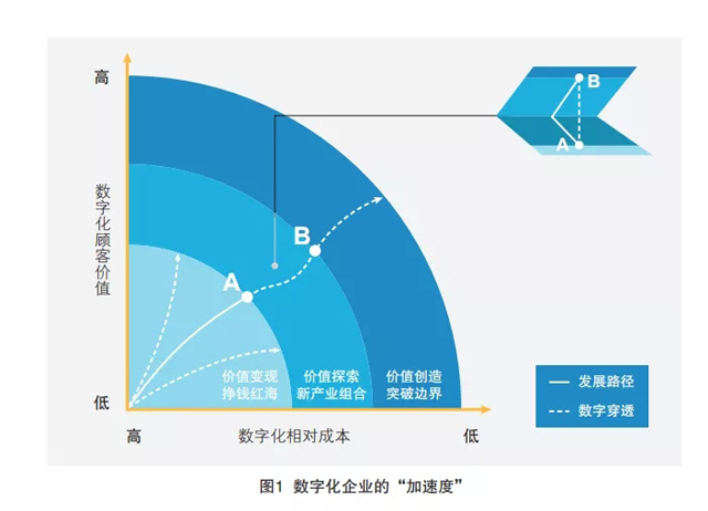 如果說,企業(yè)應(yīng)對(duì)新挑戰(zhàn)的關(guān)鍵在于認(rèn)知數(shù)字化“加速度”給企業(yè)發(fā)展帶來的新邏輯,那么對(duì)數(shù)字穿透后的新商業(yè)活動(dòng)與其系統(tǒng)的認(rèn)知突破便是企業(yè)“加速度”的必要條件。