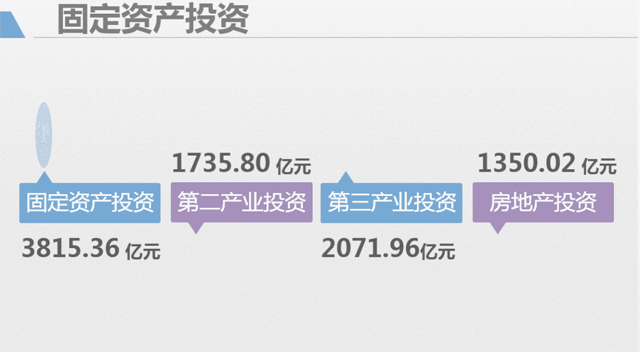 從產(chǎn)業(yè)投向看, 第二產(chǎn)業(yè)投資1735.80億元,同比增長(zhǎng)13.3%,其中工業(yè)技改投資968.60億元,同比下降9.5%。第三產(chǎn)業(yè)投資2071.96億元,同比增長(zhǎng)1.0%,其中房地產(chǎn)開(kāi)發(fā)投資1350.02億元,同比下降0.6%。