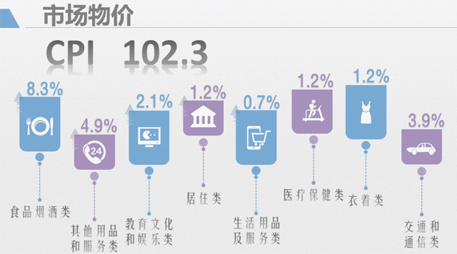 2020年居民消費(fèi)價(jià)格總水平(CPI)為102.3,市場(chǎng)物價(jià)上漲2.3%。從調(diào)查的八大類商品和服務(wù)價(jià)格來(lái)看,與上年同期相比,呈現(xiàn)出“五升三降”格局,上漲的五大類中,漲幅較高的是食品煙酒類,上漲8.3%,其他用品和服務(wù)類上漲4.9%,教育文化和娛樂(lè)類上漲2.1%,居住類上漲1.2%,生活用品及服務(wù)類上漲0.7%,醫(yī)療保健類下降1.2%;衣著類下降1.2%,交通和通信類下降3.9%。