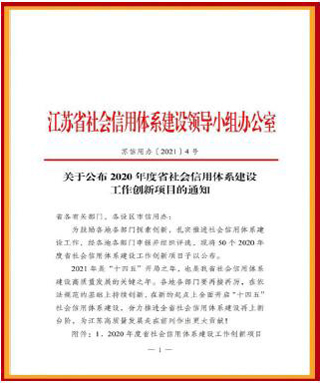 (2020 年度江蘇省社會(huì)信用體系建設(shè)工作創(chuàng)新項(xiàng)目)