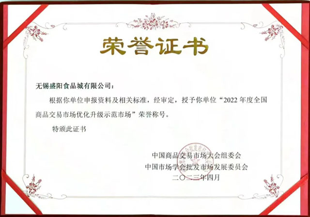 喜訊!盛陽食品城榮獲二項全國級行業(yè)榮譽