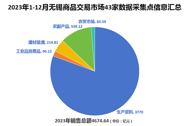 2023年,隨著新冠疫情防控平穩(wěn)轉(zhuǎn)段,社會(huì)經(jīng)濟(jì)高質(zhì)量發(fā)展扎實(shí)推進(jìn),全面駛向恢復(fù)性發(fā)展階段。在國(guó)家一系列政策鼓勵(lì)和支持下,無(wú)錫商品交易市場(chǎng)迎來(lái)了穩(wěn)中向上的有利時(shí)機(jī)。無(wú)錫市場(chǎng)協(xié)會(huì)從抽樣43家重點(diǎn)市場(chǎng)統(tǒng)計(jì)數(shù)據(jù)來(lái)看,2023年1-12月,無(wú)錫商品交易市場(chǎng)五大行業(yè)實(shí)現(xiàn)銷售總額4674.64億元,同比增長(zhǎng)4.5%。表明我市商品交易市場(chǎng)全年運(yùn)行穩(wěn)中有進(jìn)、回升向好。