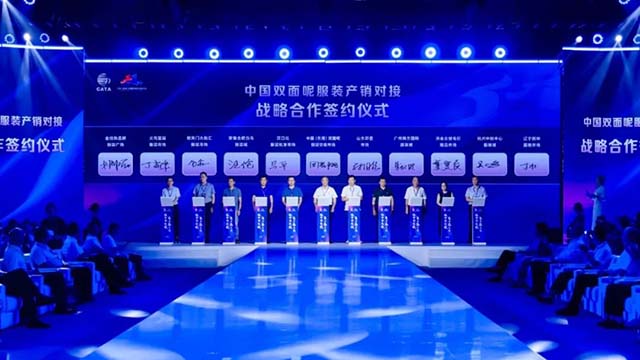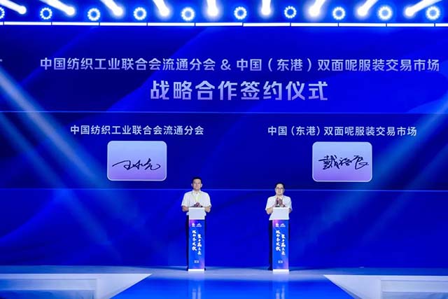 為推動雙面呢產(chǎn)業(yè)的頂層設(shè)計落地、戰(zhàn)略目標(biāo)實施,中國紡織工業(yè)聯(lián)合會流通分會副會長兼秘書長王水元與中國(東港)雙面呢交易市場董事長戴裕良進行戰(zhàn)略合作簽約,將進一步提供專業(yè)的系統(tǒng)服務(wù),助力雙面呢產(chǎn)業(yè)的持續(xù)發(fā)展。