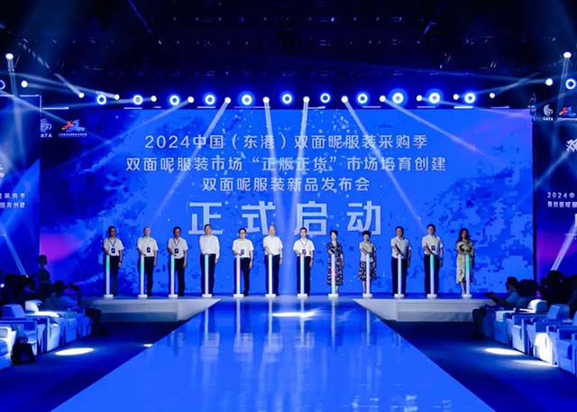 在與會領(lǐng)導(dǎo)嘉賓的共同見證下,2024中國(東港)雙面呢服裝采購季暨雙面呢服裝市場“正版正貨”市場培育創(chuàng)建活動正式啟動。