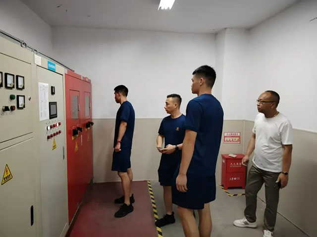 演習(xí)開始前,消防救援大隊的專業(yè)人員來到無錫新世界消防泵房,針對現(xiàn)有泵房內(nèi)的設(shè)施和關(guān)鍵區(qū)域進行檢查,了解設(shè)備設(shè)施運行情況,并對現(xiàn)場存在的問題進行指導(dǎo)。