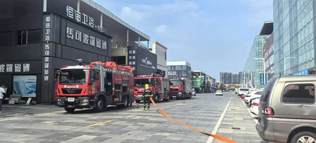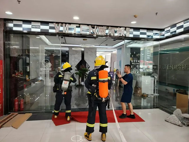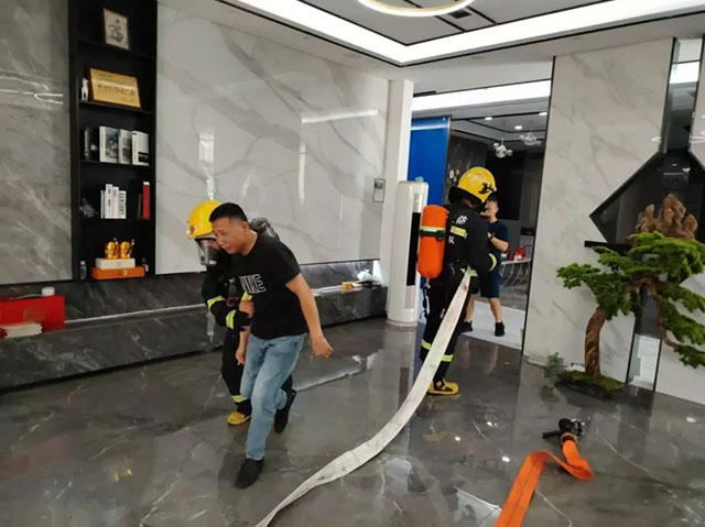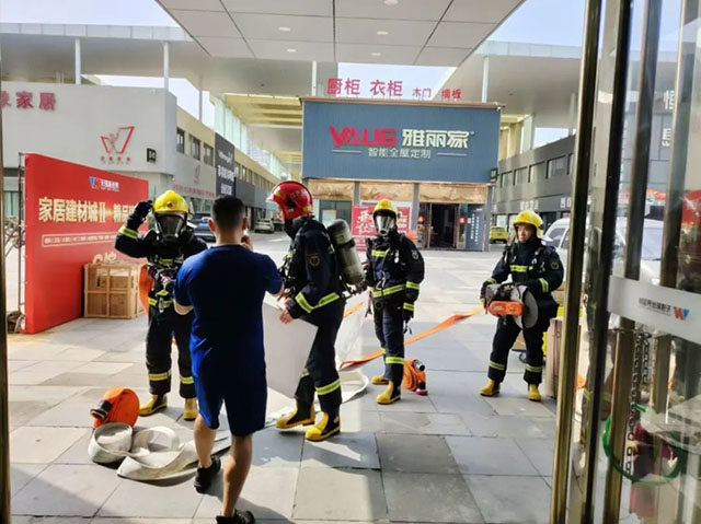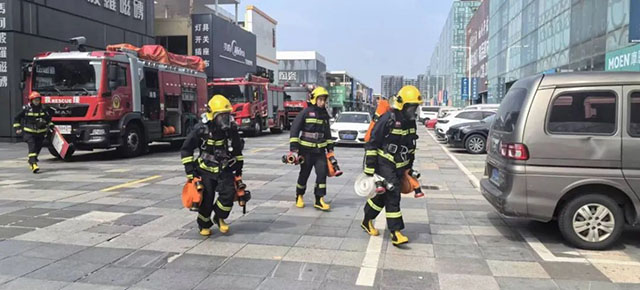 隨著警報聲響起,演練正式開始。演練火情設(shè)定為無錫新世界C館威爾頓瓷磚店內(nèi)發(fā)生火災(zāi),火勢發(fā)展迅猛,燃燒面積大,火場情況十分危急。