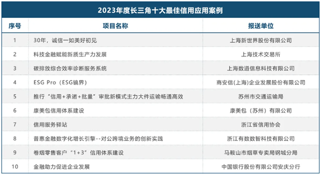 △2023年度長三角十大最佳信用應(yīng)用案例發(fā)布